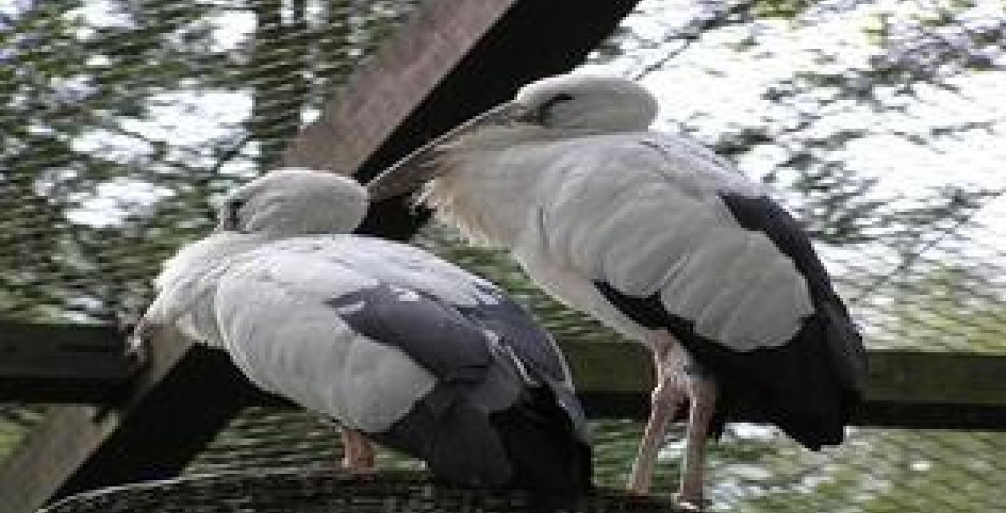 - Huisvesting: ruime volière of verblijf (ca. 50 m² per paar, ca. 4–5 m hoog) met waterpartij en stevige nestplatforms.