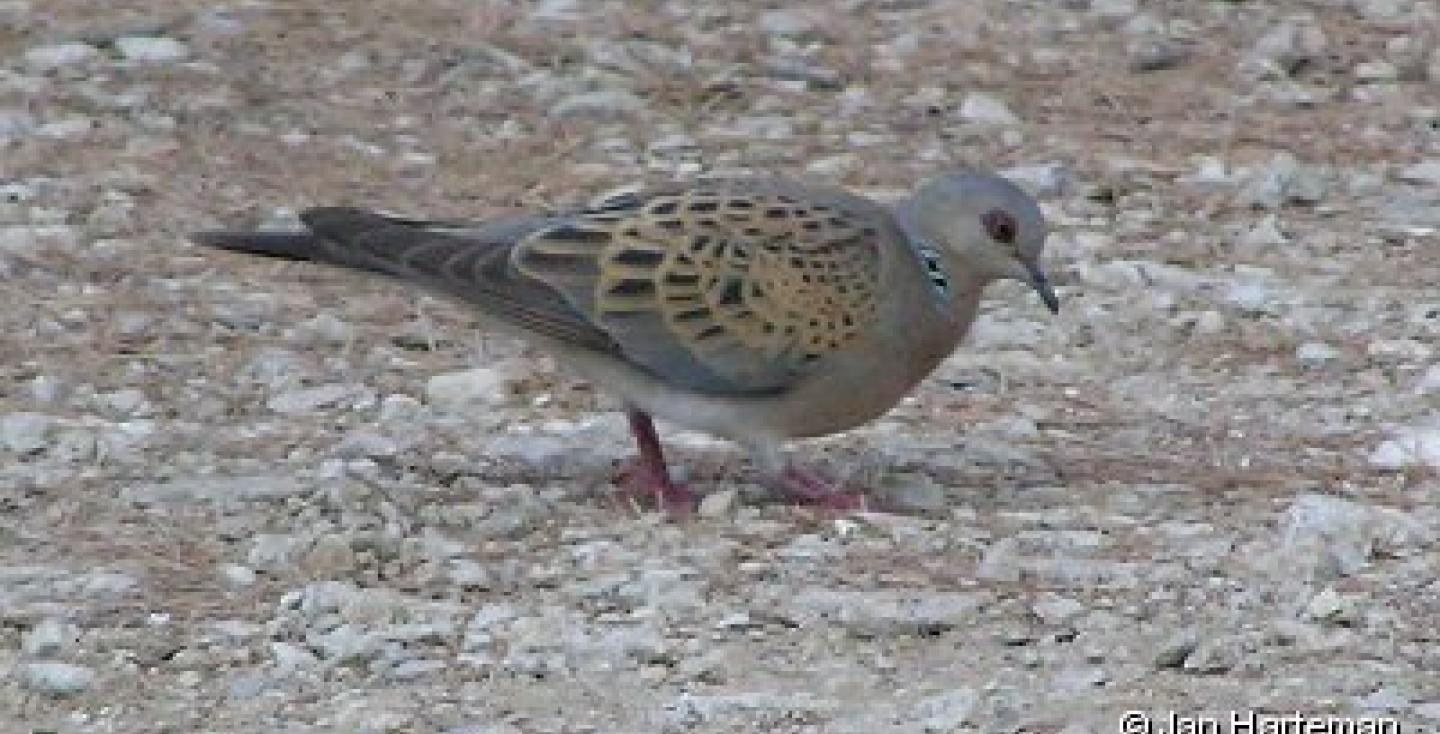 De zomertortel is een sierlijke, bedreigde zangvogel die vooral in Europa broedt en na het broedseizoen naar het zuiden van de Sahara trekt voor de winter. Je vindt hem in open landschappen, houtwallen, heggen en akkerranden waar hij op de grond zoekt naar zaden en granen. Het geluid is een karakteristieke, rollende 'koer-koer' en het vleugelkleed draagt opvallende schubachtige patronen. Deze soort is schuw, nestelt in dichte struiken en vormt een paar voor het leven, maar de populaties nemen sterk af door intensieve landbouw en jacht in het overwinteringsgebied.